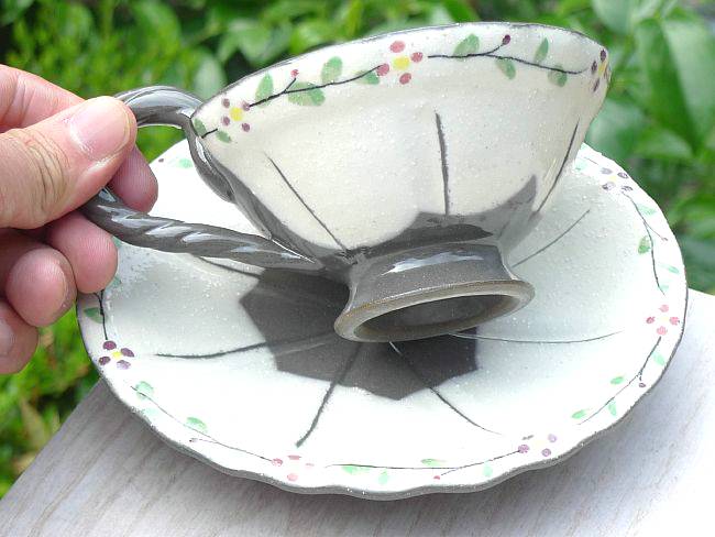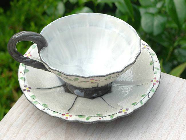 京焼 清水焼 花くるり紅茶碗皿 白 加春