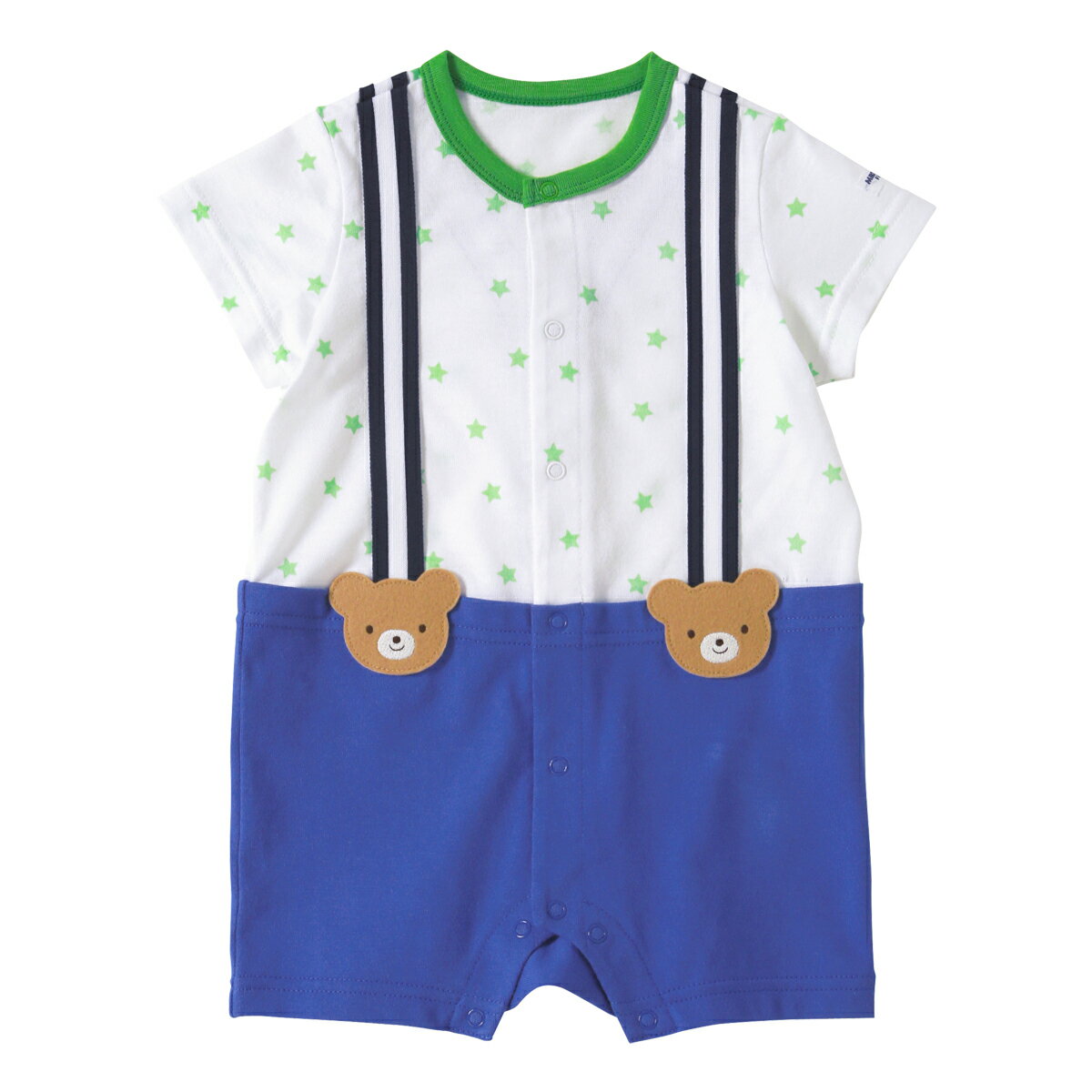 ミキハウス mikihouse くまちゃんのサスペンダー風ショートオール(60cm・70cm・80cm) ベビー服 子供服 ロンパース 男の子 前開き