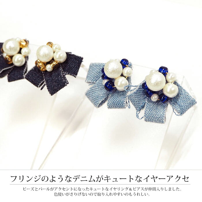 商品名 ピアス&イヤリング(デニム&パール) (pi-380-068) STAFFコメント デニムとパールの組み合わせがとってもおしゃれ! 大人の女性にもぴったりな上品カジュアルが完成です♪